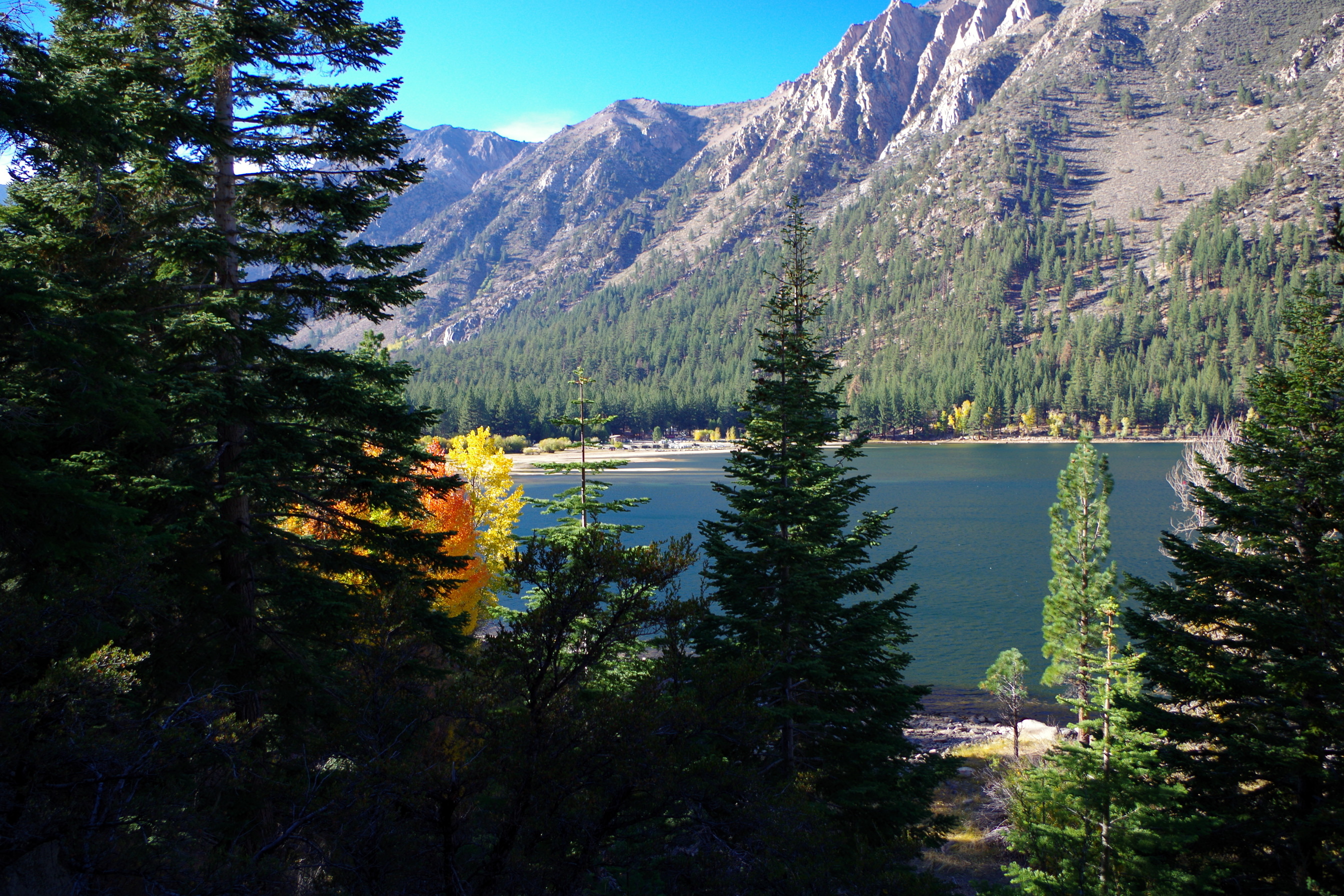 Wir sind endlich unterwegs. Nach mehreren Besuchen in der Autowerkstatt und bei XP Camper ist nun alles geregelt, unser Gefährt in Schuss, Ersatzteile und letzte Einkäufe verstaut und der Kühlschrank voll. Wir sind aus Grass Valley losgefahren, nach Südosten, in die Sierra Berge bis wir auf 2000 m ein Plätzchen in einer Lichtung mit Sicht auf die unendlichen Wälder fanden. Noch ist es ja einfach. Im Westen von USA findet man leicht ein einsames Plätzchen für die Nacht, die Gegend ist spärlich besiedelt und viele grosse Gebiete sind für alle zugänglich.