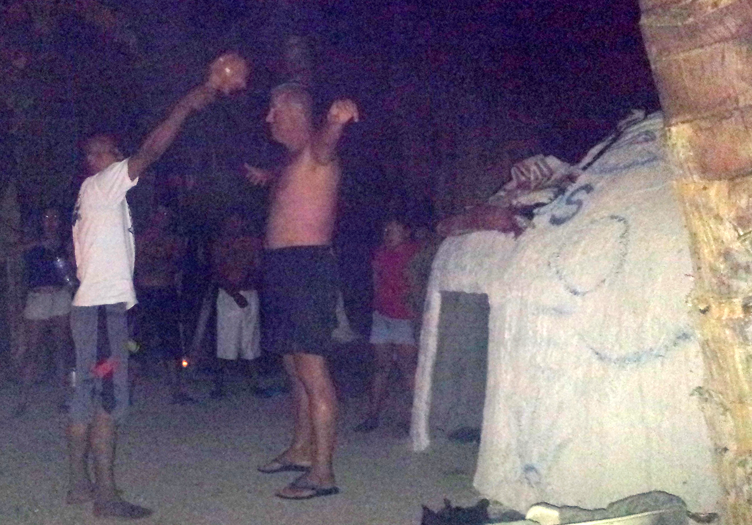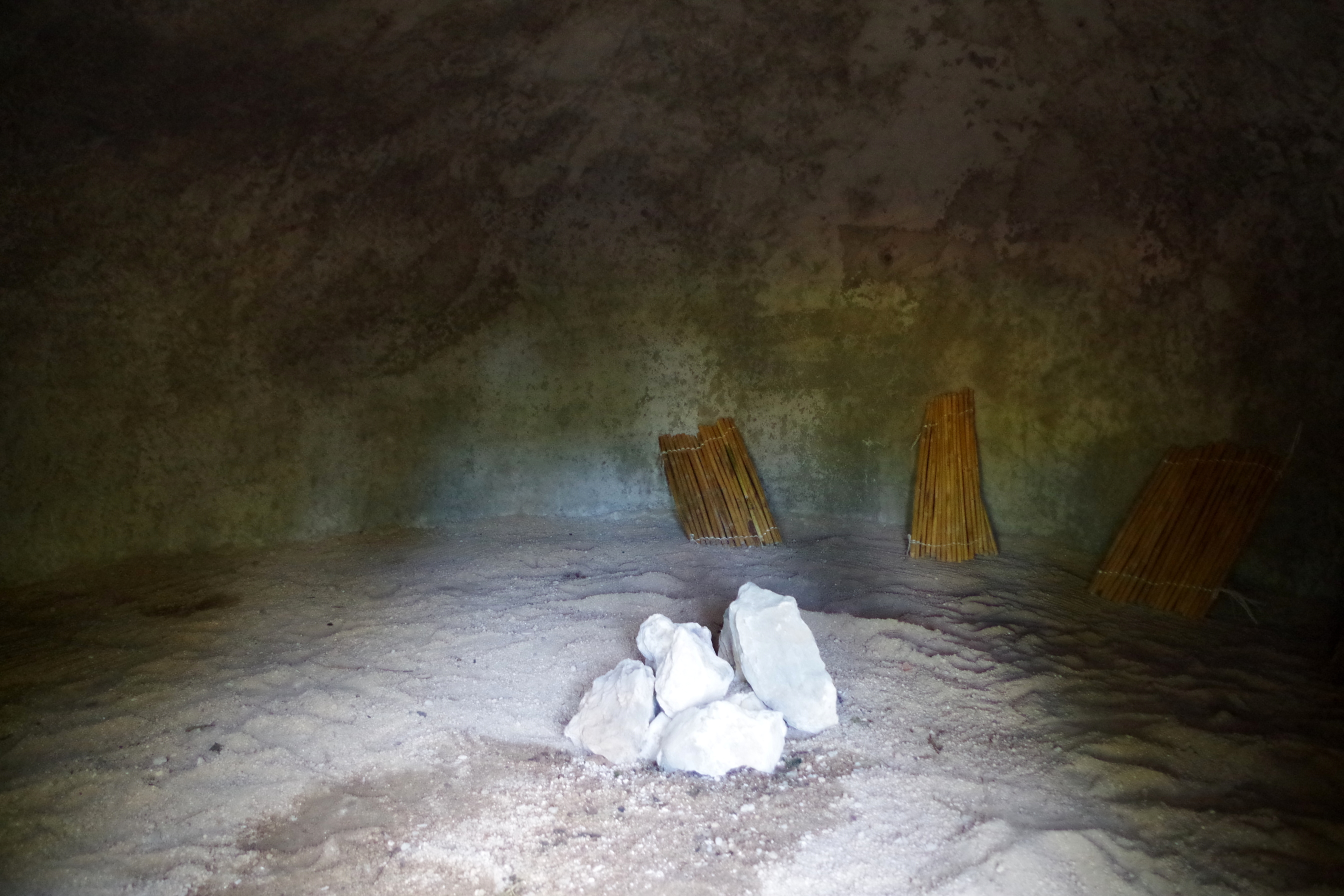 We walked with them through the little town to a farm where we sat around in the dark for a while and waited for the rocks to get hot enough. A few more people showed up and finally we were told to come to the entrance of the structure. There one after the other was “cleansed” with smoke from herbs before crawling inside through a narrow entrance.