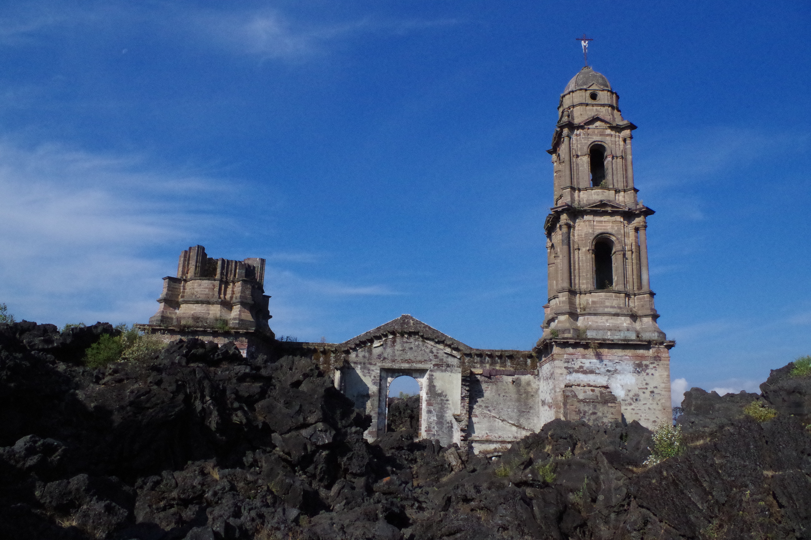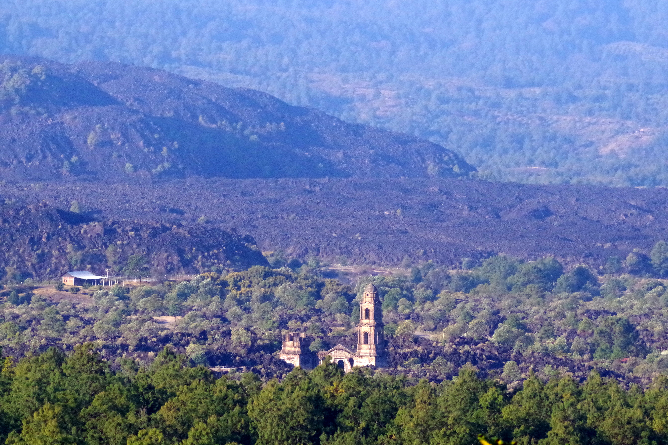 Avocados, coffee and pistachios are the main crops here. On our way to Patzcuaro we stopped at Angahuan for the night and walked to the site where the church of San Juan was engulfed by lava from volcano El Paricutin.
