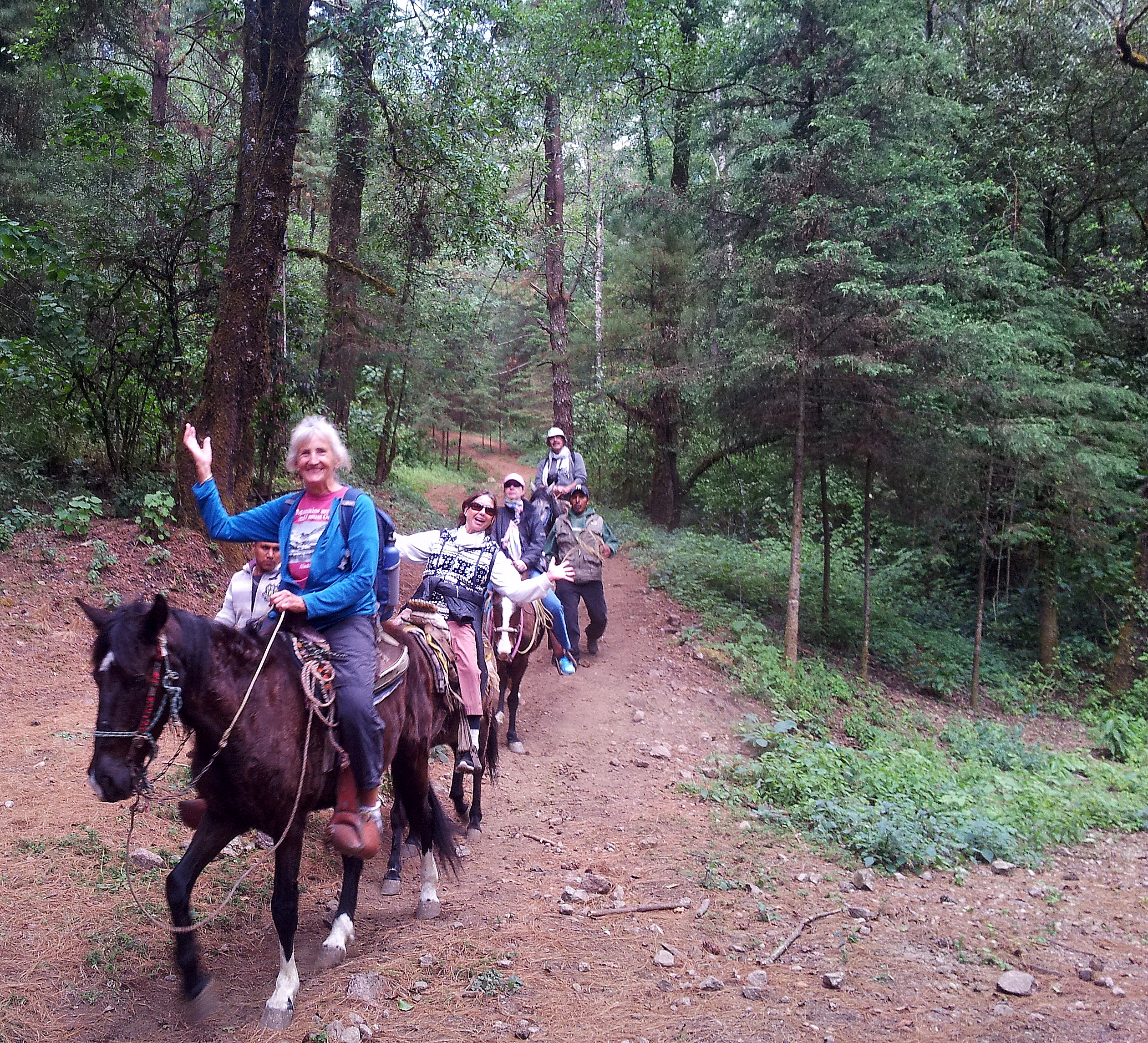 First one or two, so more and more and by the time we got off our horses (there were eight of us) we were engulfed in butterflies. It was amazing and quite a sight. I cannot put the right words to it, one has to be there. There were clusters of them hanging on branches, a carpet of them on the ground looking for moisture and when the sun came out behind a cloud they exploded into an airborne mass of orange snowflakes. You can hear them, there are so many wings flitting, it sound like rain.