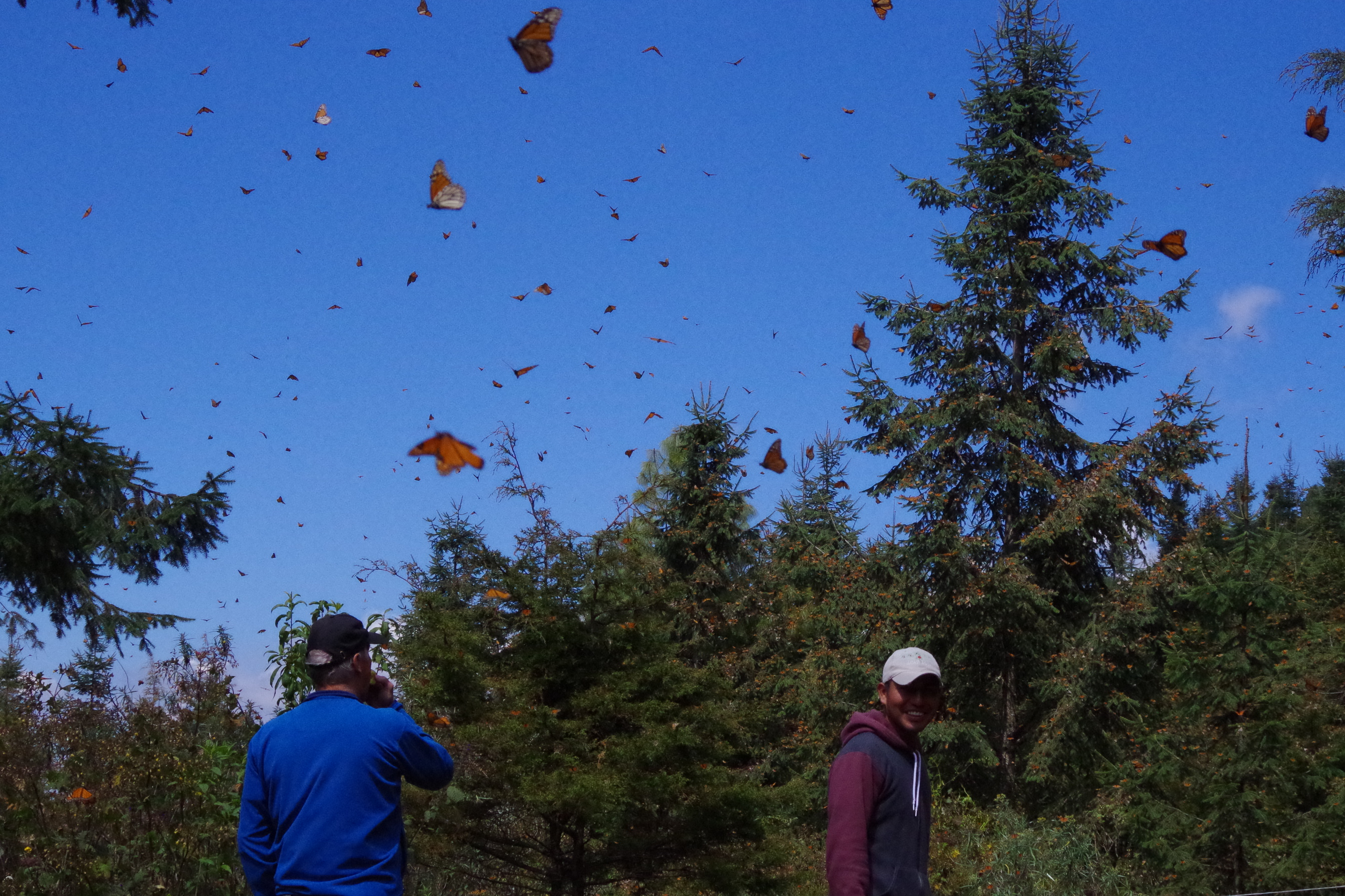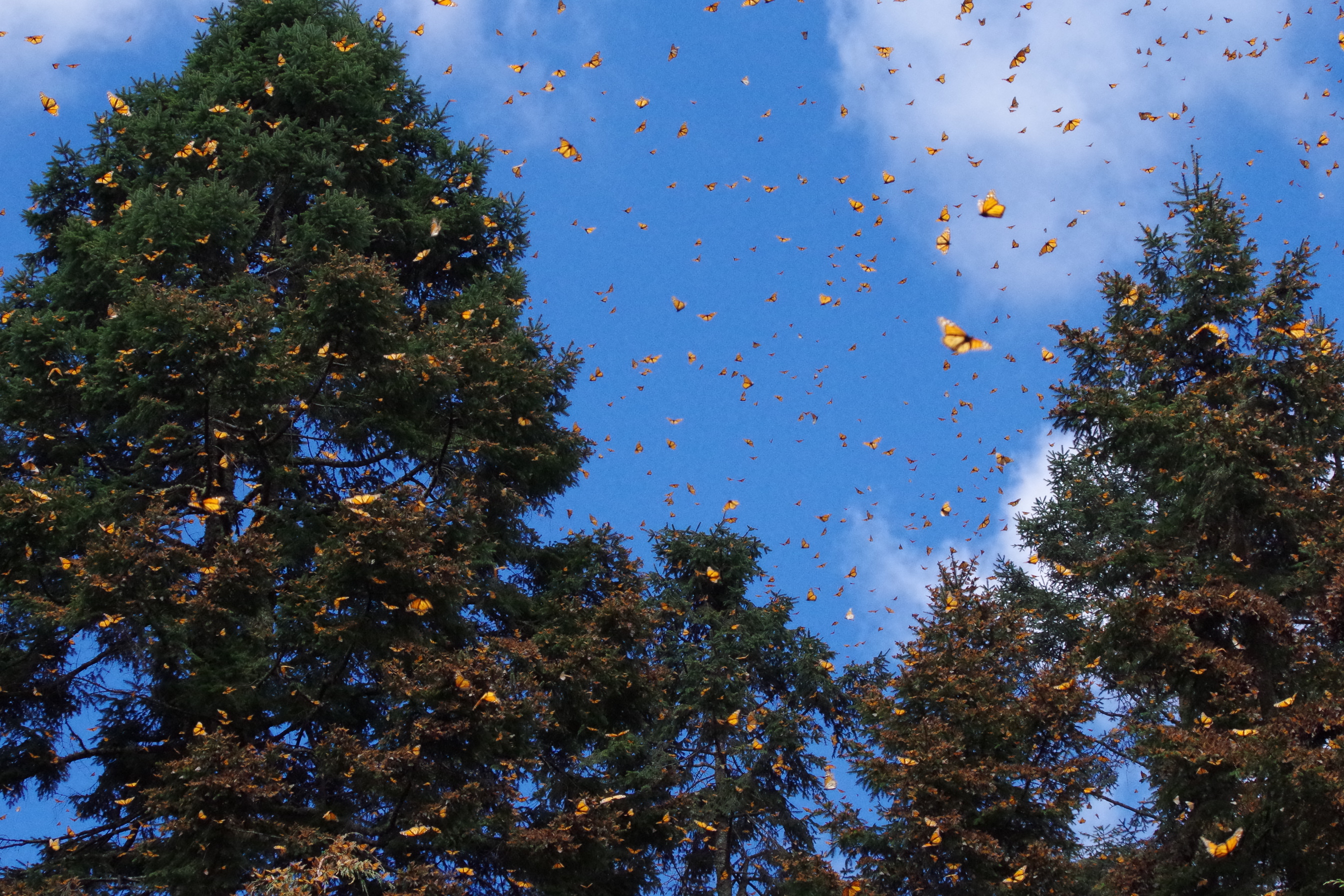 Years ago I read a National Geographic article about the incredible migration of the Monarch Butterfly. They leave their range in Canada and USA in the fall and fly all the way to the mountains east of Mexico City for the winter. There they congregate in a few places high up in the mountains and wait until it gets warmer, as soon as the sun comes out they fly around and look for potential mates. Most males die after they mate and the rest of the butterflies leave the mountain tops in mid March and head north again.
