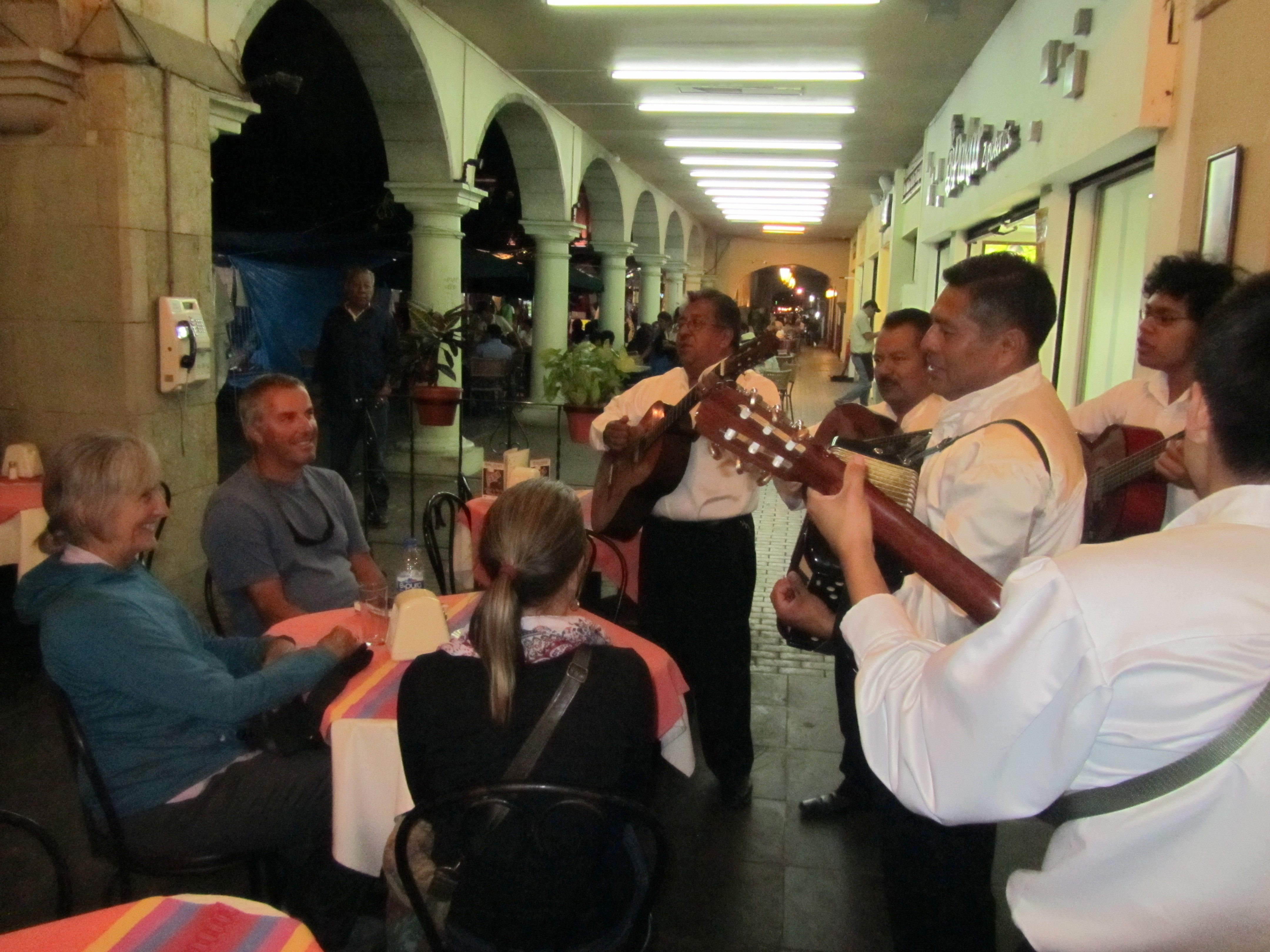 It was my birthday and Günter asked to band to play “Besame mucho” for me, how sweet. Since we have no room for “things” I did not buy anything at the market, but boy, it was hard. The villagers from the outlying areas bring their handicrafts to market, colorful clothing, rugs and blankets, jewelry and pottery.