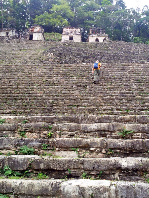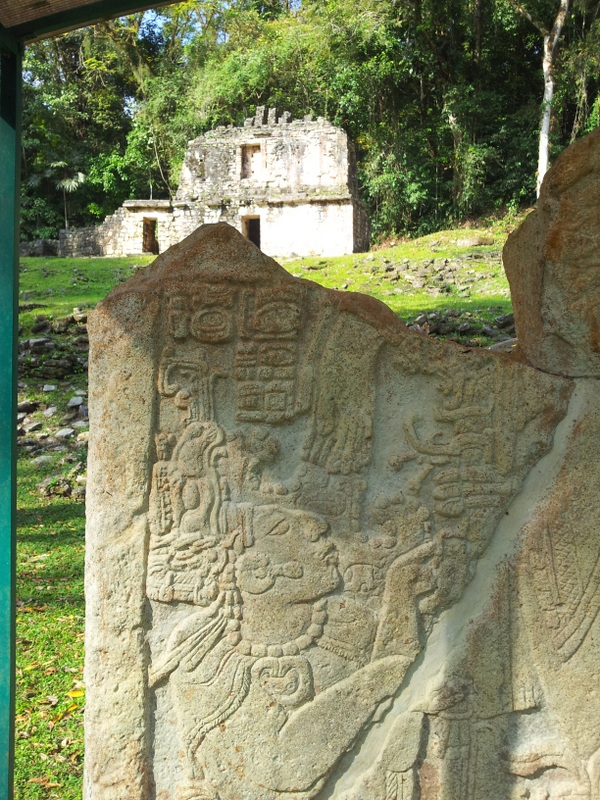 We climbed jungle covered hills to find hilltop pyramids, tunnels with bats and panels with Mayan inscriptions.