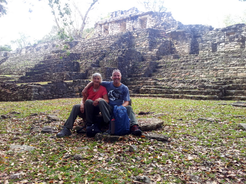 Barbara and Uwe as well as Veronika and Michael, both couples from Germany and seasoned world travelers took the same route. We camped near the Usumacinta River; it is the border between Guatemala and Mexico (under some trees near the Jaguar hotel) and made arrangements for a boat for the six of us the next morning to take us 22 km downriver, to Yaxchilan. 7 am was nice and cool and the boat ride was pleasant, the ruins and the setting were amazing.