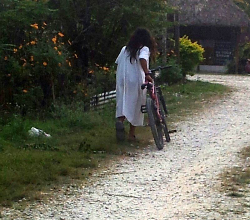 Bonampak was another site we enjoyed, the town we stayed in was a Lacandon village, the lancandones are quite different from the Mayans we saw in other areas. Gone are the colorful dresses, some people wear modern clothing, but some of them still wear their traditional white long tunics, especially men and boys. The boys in the house next to where we were camping were playing and bike riding in their white outfits all day. They also have thick long black hair and look more like their relatives in the Amazon rainforest.