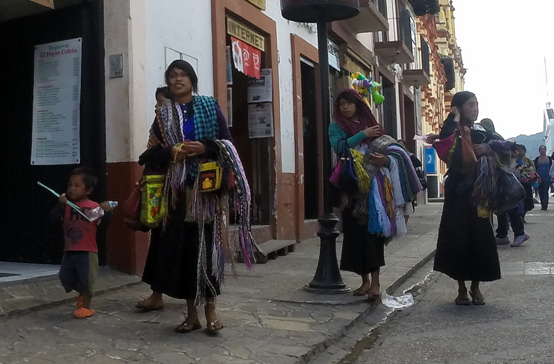 The last part of Mexico was Chiapas and the Yucatan. San Cristobal de las Casas is a nice colonial town in the highlands of Chiapas, it is popular with international tourists. The campground is close to town and a 20 minute walk brings you downtown where you can watch Totzil women try to sell their weavings. They wear thick wool skirts (it is winter remember), held together at the waist by colorful wide belts and beautiful blouses, always with a shawl for warmth or to carry a baby or … You can also get a latte, join a yoga class and eat sushi in this town. You can also go to the dentist, which I did, while eating nuts I chipped a tooth. Dr Flores spoke good English, fixed my tooth and told me about regional dishes, quite interesting. We went to one of the restaurants he recommended and ate fried plantains stuffed with sweet refried beans. Delicious!