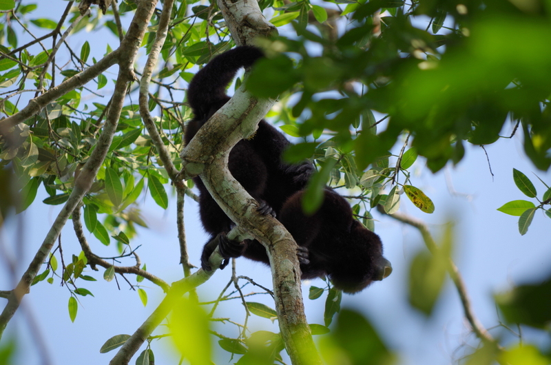 We saw them flying over our camper in pairs when we camped at the Lacandon river at Guacamaya, we saw them near Bonampak and we saw them on a boat ride deeper into the jungle, there were of course many other birds like Toucans, hummingbirds, king fishers. Beautiful flowers and plants grow under and in the trees. At the campsite the howler monkeys woke us every morning as they came through on their way up the river. The spider monkeys were right behind, so much fun to watch. In the evenings we had fireflies all around us and the stars above.