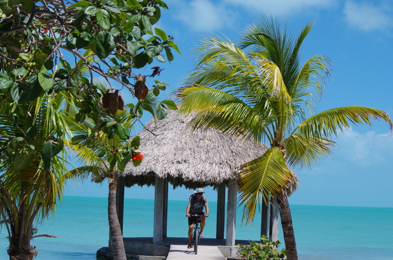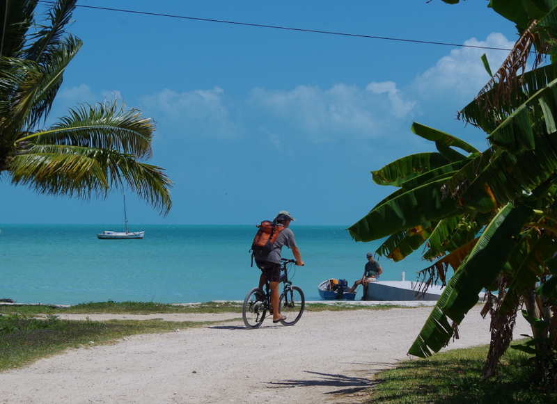 We crossed the border and immediately you could tell that you were in a different country, pastel colored houses on stilts give a distinct Caribbean feel. The music you hear in the towns changed from ranchero to reggae, it even smelled differently. To be able to speak English again and actually have a conversation without feeling like a moron was a real treat. It is also quite a bit more expensive than Mexico and the beer bottles are smaller, “thanks Billiken !” We wanted to go swimming in that amazing blue/turquoise sea and drove out to a little town called Sarteneja. It was really laid back there; the Backpackers Paradise had a spot for us under the mango trees. Needless to say, since it is mango season, we eat a lot of mangos, heaped them into our müsle and salads. We ate fresh fish a Richies Restaurant and found out too late that he would have let us camp right on the shore in front of his place. Sarteneja beaches are white and gorgeous but swimming from shore is not easy because it is shallow quite a ways out, however one is allowed to use any dock (yes, the private ones too) to walk out and jump in where it is a swimmable debt.