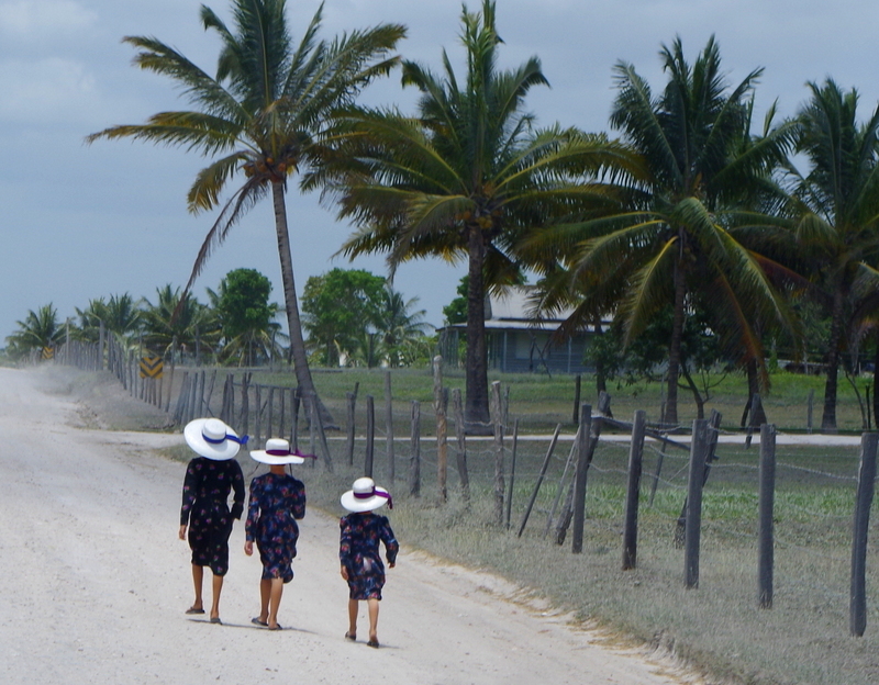.We left Sartaneja after a few days and decided to find more Mennonites, on the map there were German town names near Blue Creek close to the Mexican border. When you come to Blue Creek you can tell there is something different going on there. No garbage in the ditches and fields, beautiful homes and rolling hills with cattle, rice and corn fields. It could be anywhere in the farm country of the Pacific Northwest. This is Mennonite country, they are clearing the jungle and building more farms. They feed Belize and all its tourists. They control the animal feed business, have a chain of car part stores and make and sell furniture. Blue Creek is a “progressive” Mennonite community, they have trucks and wear more modern clothing.