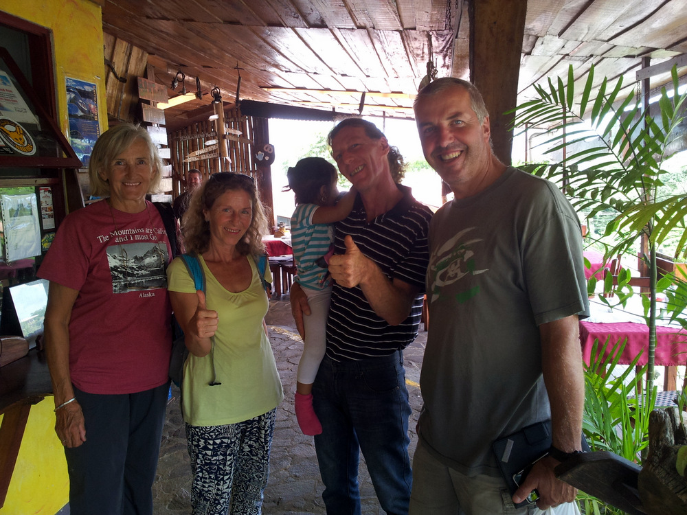 Now we are high up in the mountains above Boquete in Panama, at the end of a road at 1660 m. The view is amazing, volcano Baru out the back window, coffee fields below us, cloud forest above us. A group of indigenous from the Guaymi tribe are eating their dinner in front of our truck, they had been working in the coffee fields all day and a truck came up from town to bring their food. We had them in the camper for quite a while, they were amazed and we gave them some gifts. (Crayons and paper for the kids. Almonds: they did not know what they were, and two Costa Rica guide books: they were fascinated by them)They do not speak much Spanish, neither do we, communication was difficult, but they were very exited and our camper now smells like wood smoke.