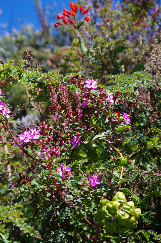 The top of Irazu was clear and we hiked from the parking lot to the highest point at 3432 meters. There were beautiful flowering vines and bushes lining the trail and we decided to have a picnic on top of the volcano.