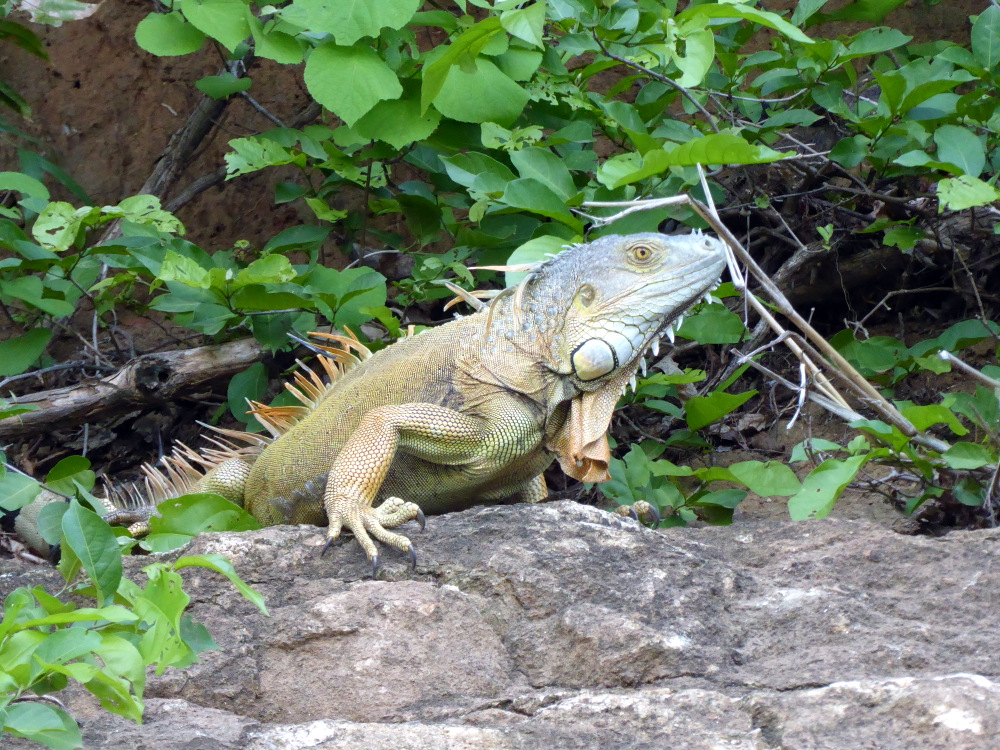 This is also a pineapple/banana/heart of palm growing area and we bought all three from a vendor. Fresh heart of palm is very good and now one of my favorite vegetables, hard to find though unless you live in the area. It is very tropical, hot and humid in the jungle and we camped beside the river for one night, in the yard of a very nice young couple that offers rafting excursions. On the other side of the river is one of the private reserves, so you get some wildlife overflow across the river for free. It rained that night, we saw a tiny red frog enjoying more rain, Anita had a good taste of the jungle I think.