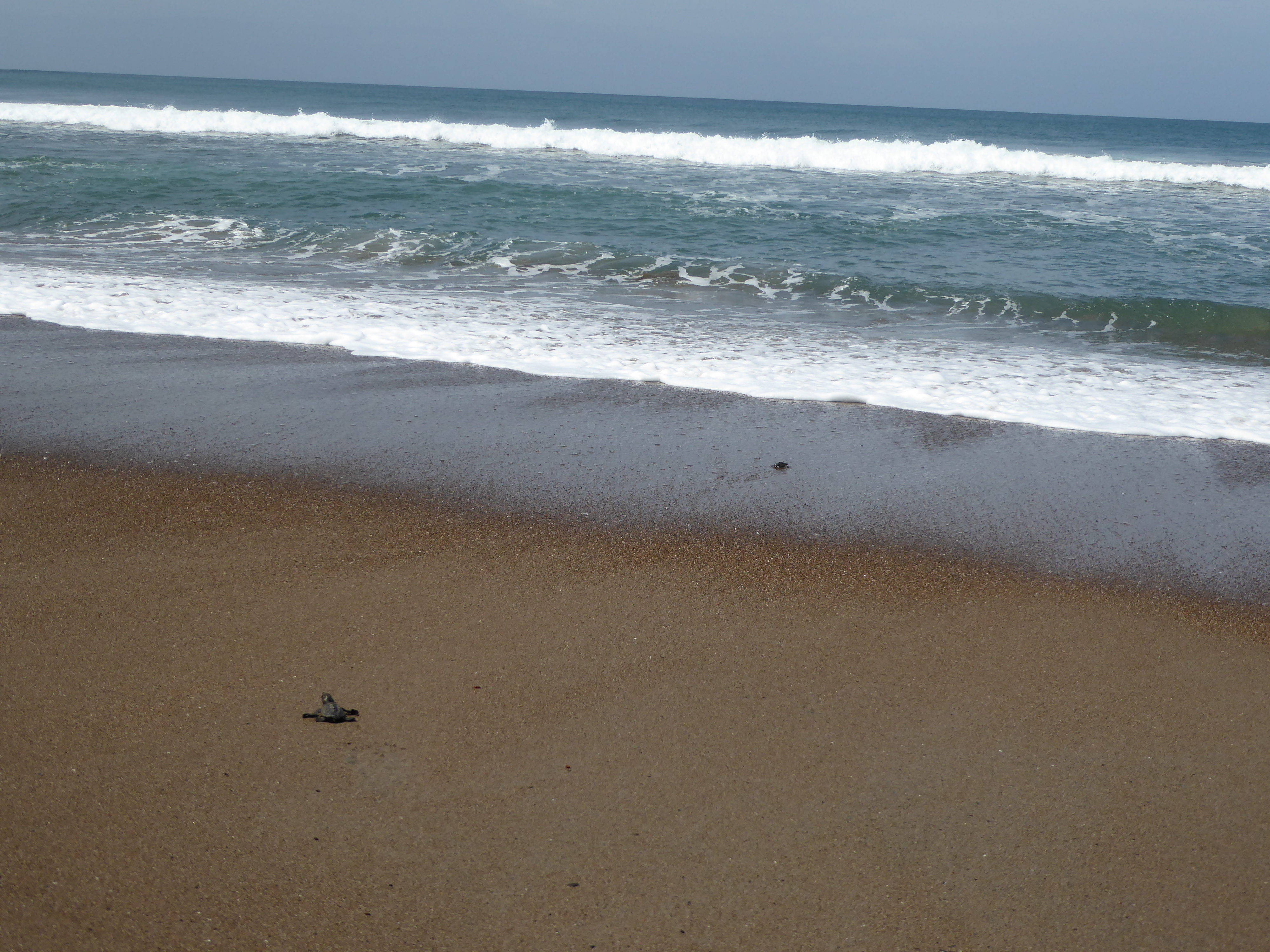 It was Anitas first time on a horse and she did really well. At Buena Vista Beach is a turtle rescue station. We stopped to talk to a volunteer, a young woman from the US. They are desperately trying to save the eggs from poachers and hatch them in an enclosed area of the beach. Some turtle babies had just hatched and we got to release them and watch them hit the surf. Poor little guys, their chances are so slim, we sent them off with best wishes.