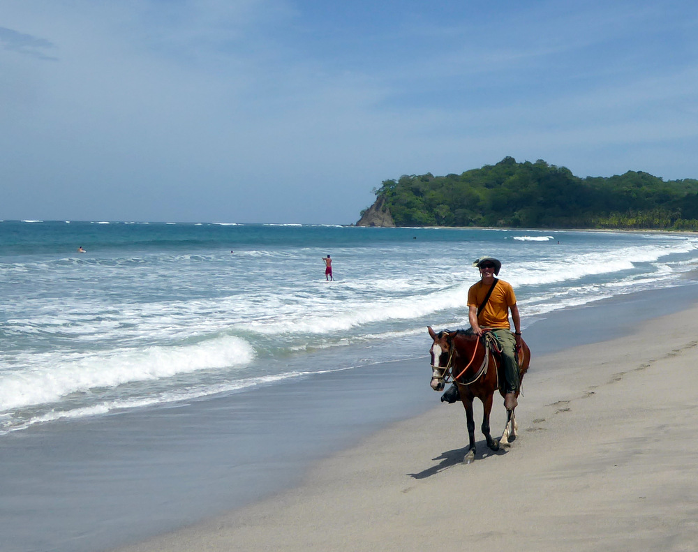 Every day Walter Nixon (a tico with a gringo name) rode past our house with his horses and offered to take use horseback riding. We finally went and had a blast, rode up to a view-point and galloped along Buena Vista beach. It made me think of all the years my friend Maureen and I used to go riding (after we got our kids off to school) on the beach and through the woods. Great memories.