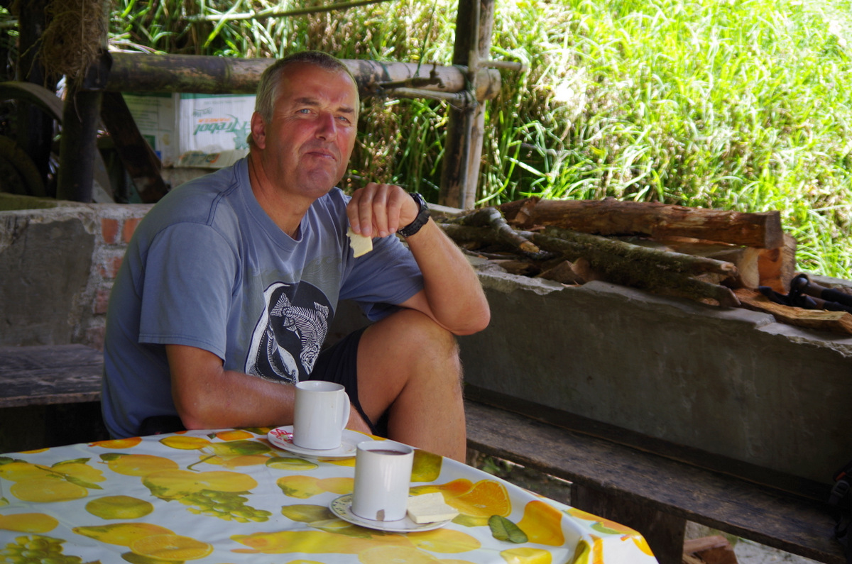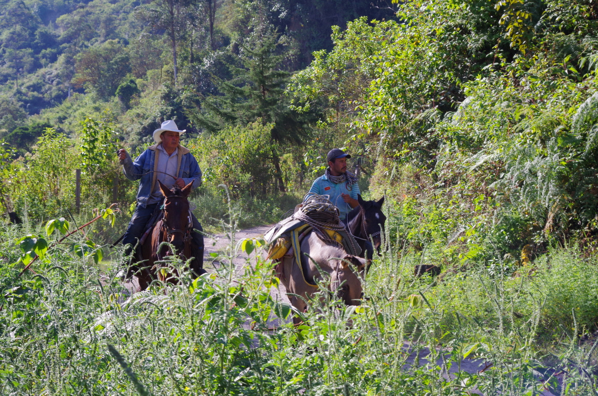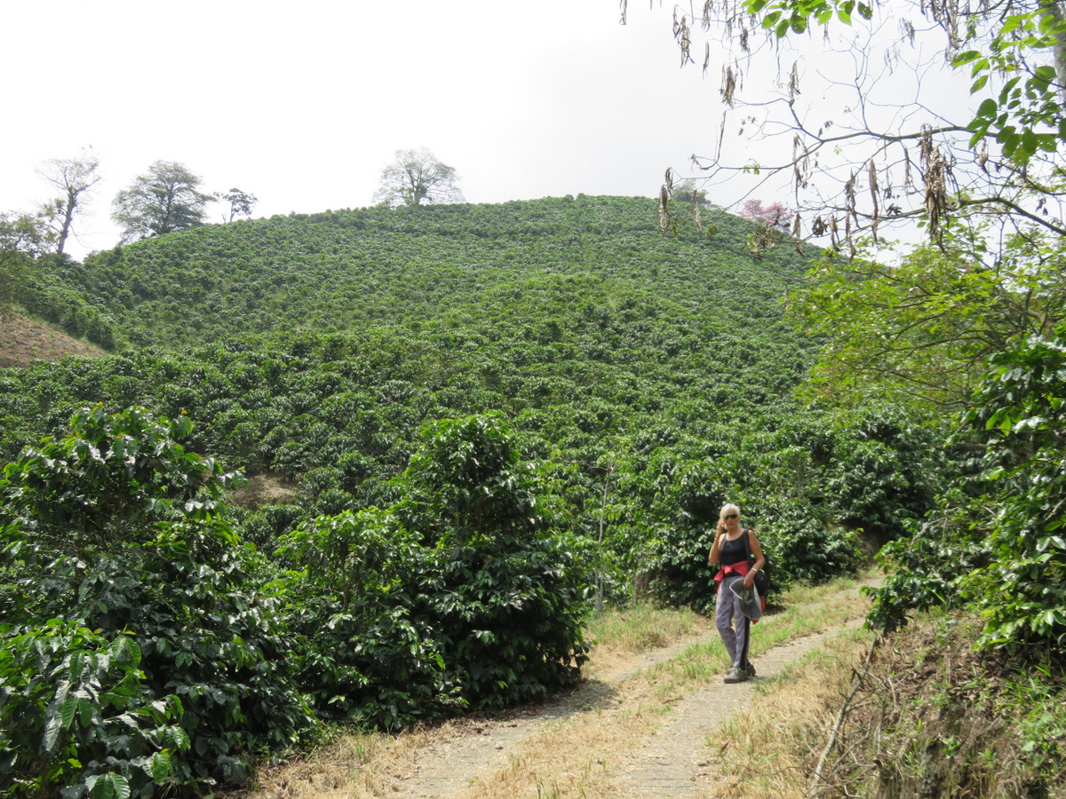 We left, crossed over the Rio Magdalena to Manizales and camped at Hacienda Guayabal in Chinchina. 64 hectar of coffee plants on steep hills, we saw the coffee harvest and production and drank great coffee. There we finally ran into Juan Valdez.