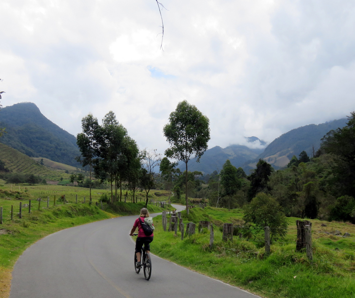 On to Salento we went, broke out the bicycles and rode to the Valle do Cocora, famous for the very high wax palms, the nation tree of Colombia.