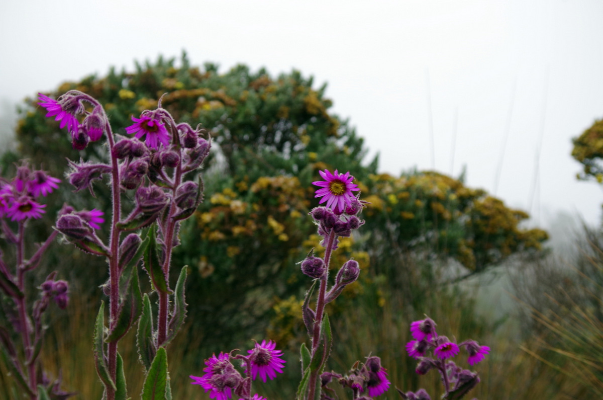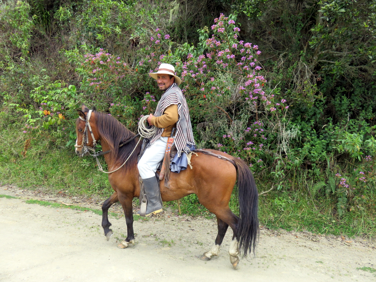 Colombia is famous for its coffee. So we went looking for Juan Valdez, the campesino and his mule Conchita that has been advertising Café de Colombia all over the world for many years. Leaving Bogota we headed west and first drove to Los Nevados National Park in the central Cordillera of the Colombian Andes. The 5,300 m-high volcano Nevado del Ruiz dominates Los Nevados. At the Thermales Ruiz we camped, relaxed in the hot water and did some bird watching. The next day though the fog rolled in and the trails to the volcano were closed due to recent volcanic activity. On our walks we could not get over the unusual and beautiful wildflowers and other plants that grow at such a high altitude.